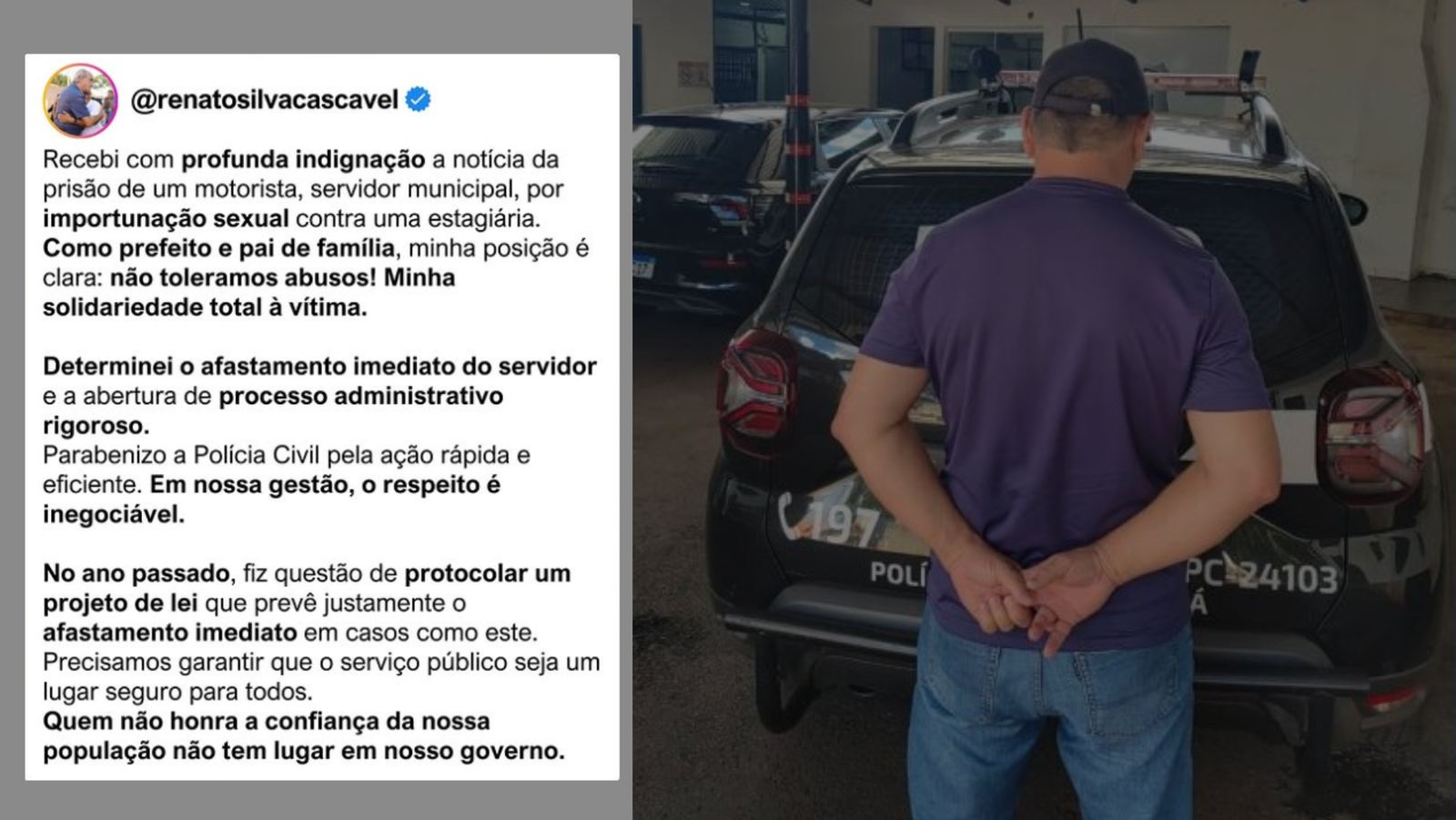 Prefeito de Cascavel afasta imediatamente servidor suspeito de importunação sexual
